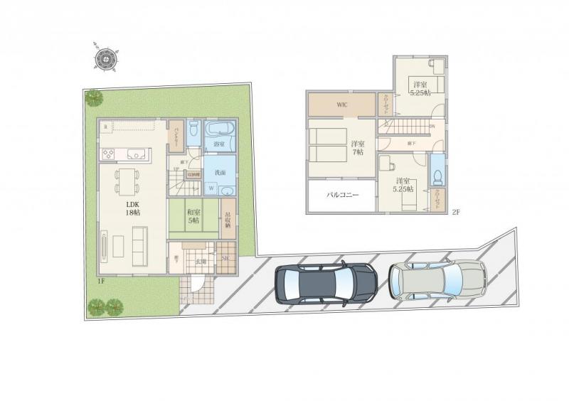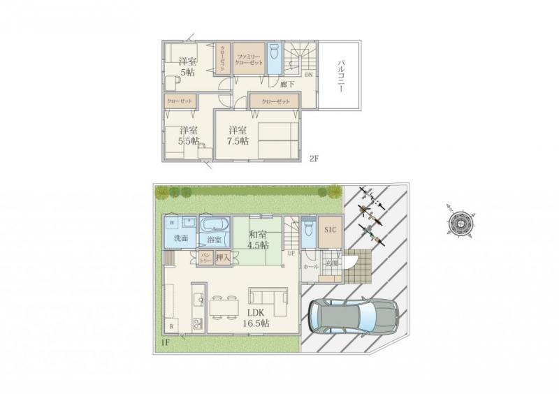 最大44坪超の広い敷地にカースペース2台分を確保。