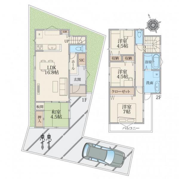 新設の4.5m道路は車の通り抜けが出来ない設計のため、交通量や駐車時、また防犯面も安心です。