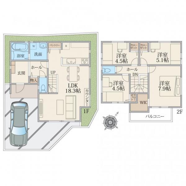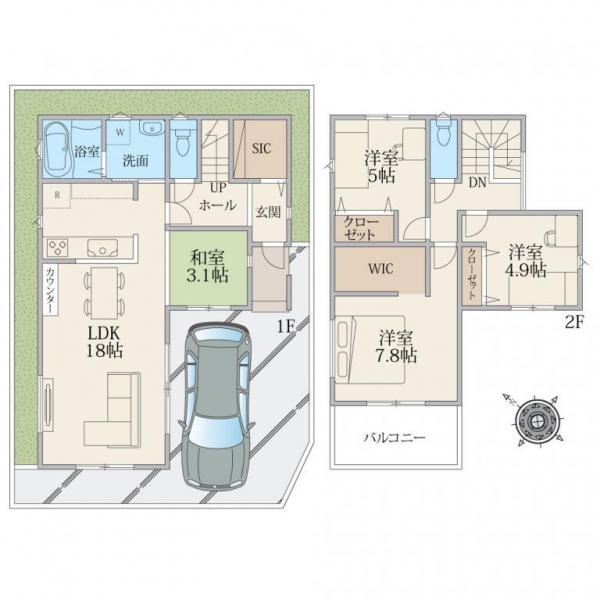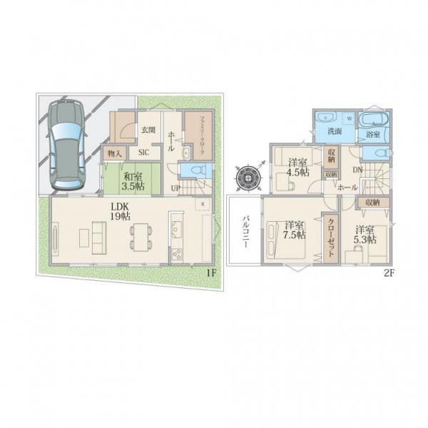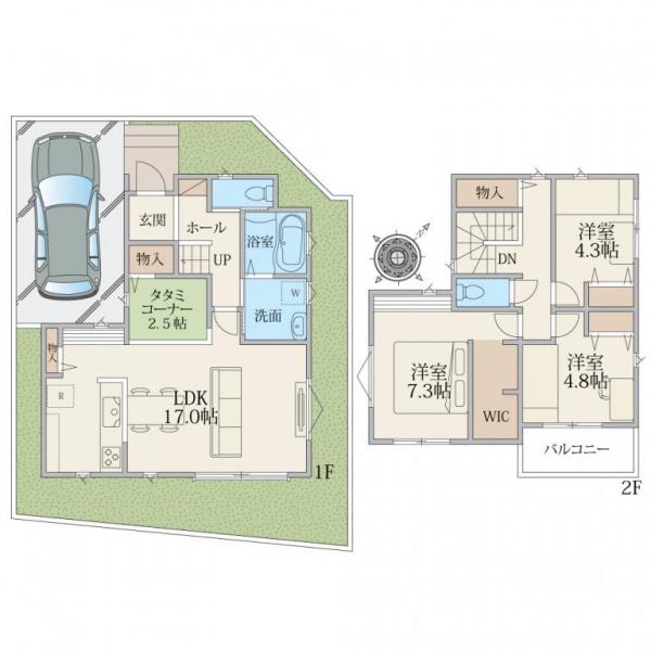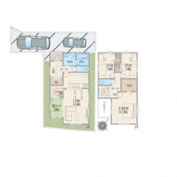 大型4LDK+カースペース2台駐車可、広いお庭も確保できる区画計画