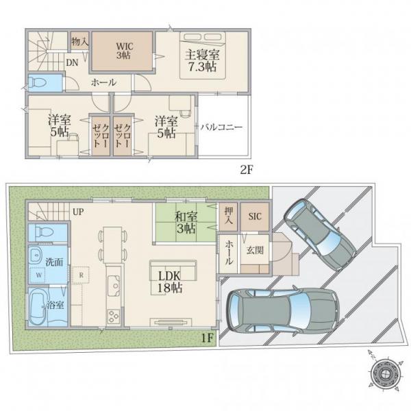 土地面積34坪、カースペース2台駐車可能