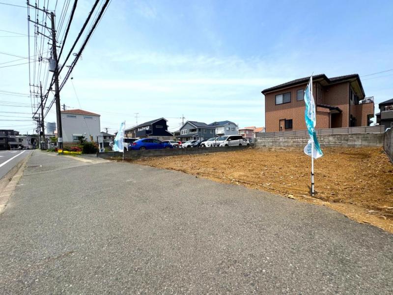 前面道路は広く、歩道も整備された安心の通勤・通学路。
