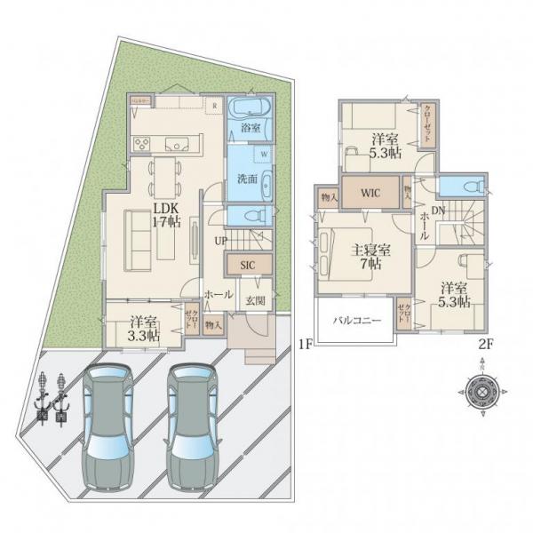 土地面積42坪超の整形地は、カースペース2台、お庭も確保可能です♪