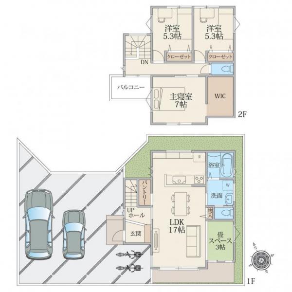 土地平均43坪超、カースペース2台駐車可