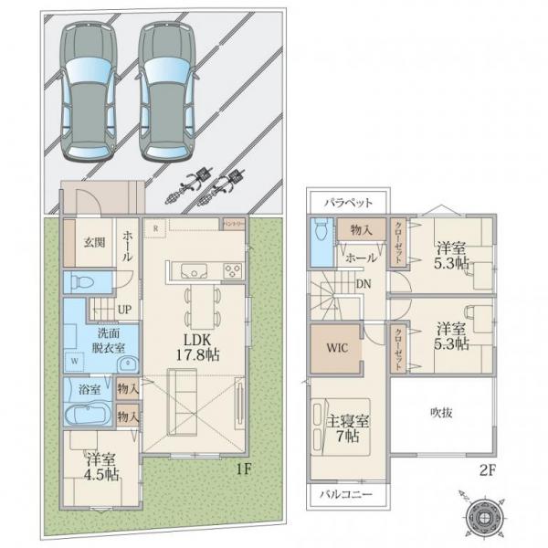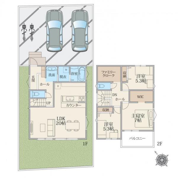 整形地のため、カースペース2台や庭付きプランなど多彩な建築計画をご検討いただけます。