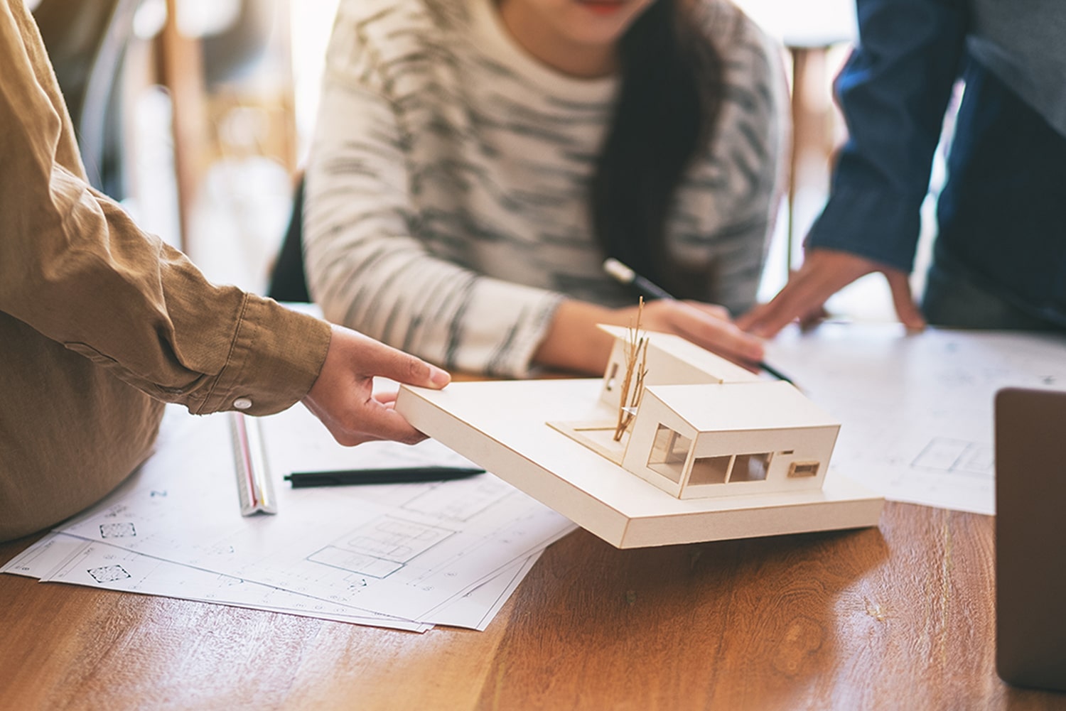 建物の広さ、間取り、設備、外観から、ご家族のライフスタイルやお好みのインテリアまで、納得のいくまで打ち合わせを重ねて基本的な設計を行います。